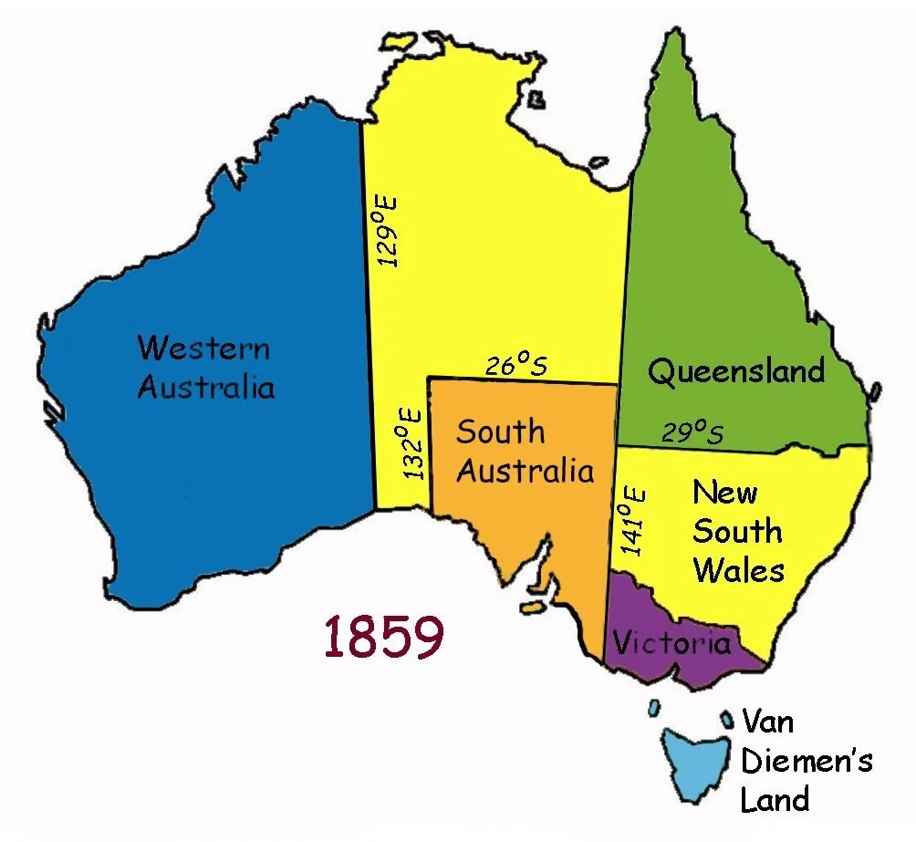 Van Diemen's land was renamed to Tasmania on 1st Jan 1856 | The colony of Queensland was proclaimed 6th Jun 1859