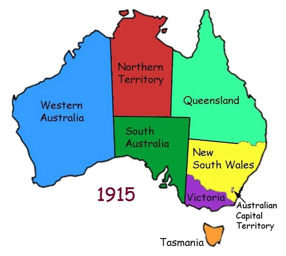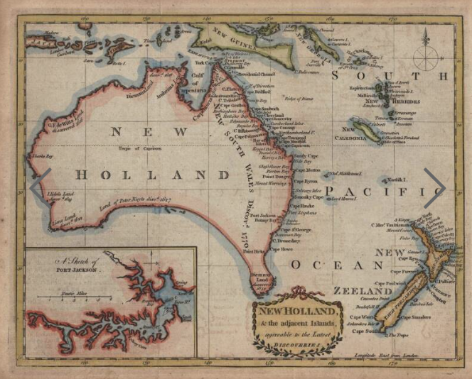 Discover the evolution of the colonies of ‘New Holland’ from the time of Lieutenant James Cook's secret instruction to "take possession" "as first discoverers and possessors", of the great southern continent in the name of the King of Britain → to the current day, exhibiting the states and territories of Australia . . .