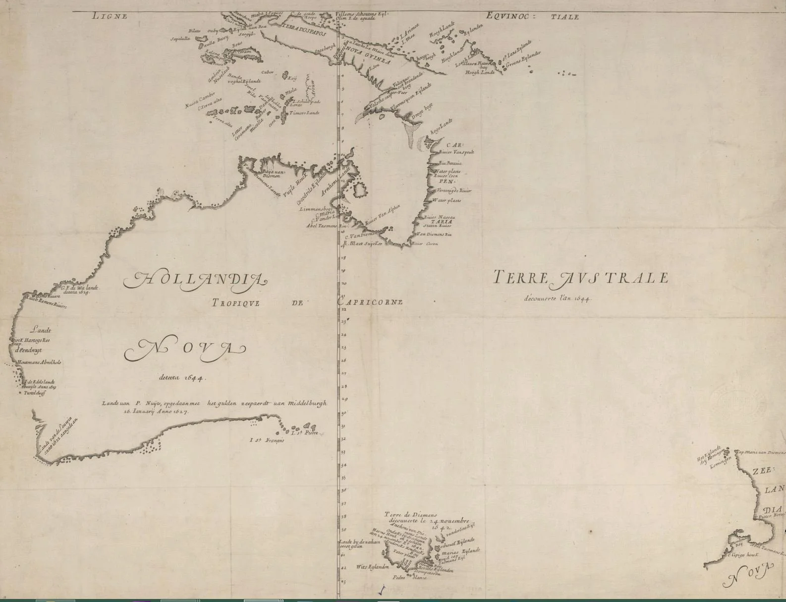 the theorised southern land of ‘Terra Australis Incognita’ was identified as ‘New Holland’ c 1644