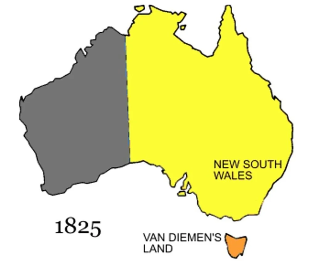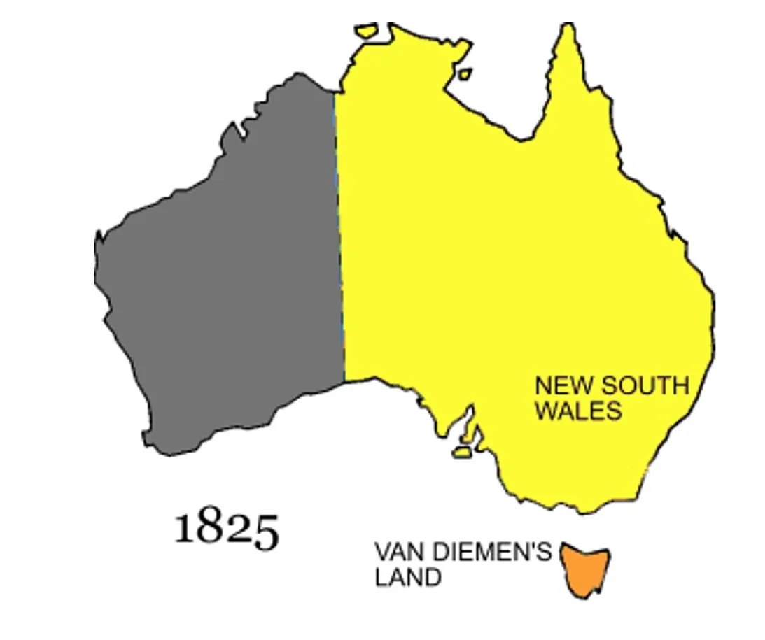 The New South Wales western border was extended to 129th meridian east on 3rd Dec 1825 | The colony of Van Diemen's Land was proclaimed 16 Jul 1825